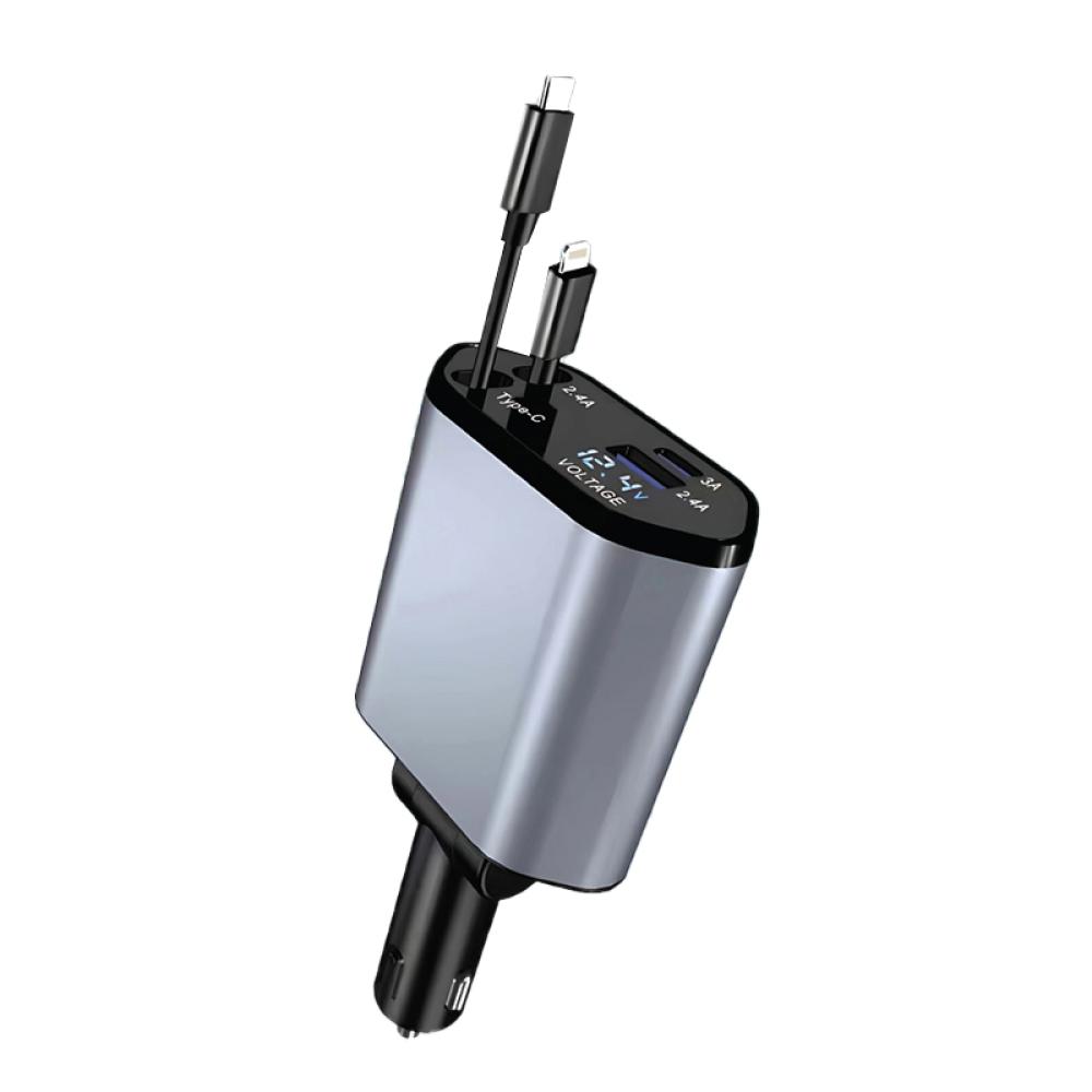 شاحن سيارة تايب سي، ايفون، و يو اس بي بقوة 18 واط تلسكوبي متعدد المنافذ من DENX